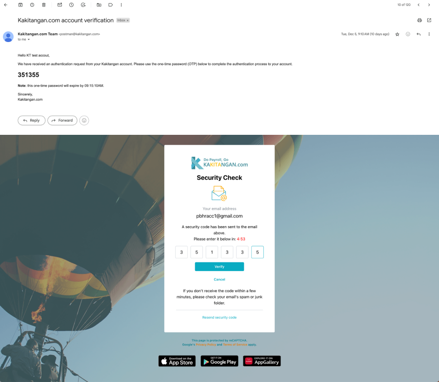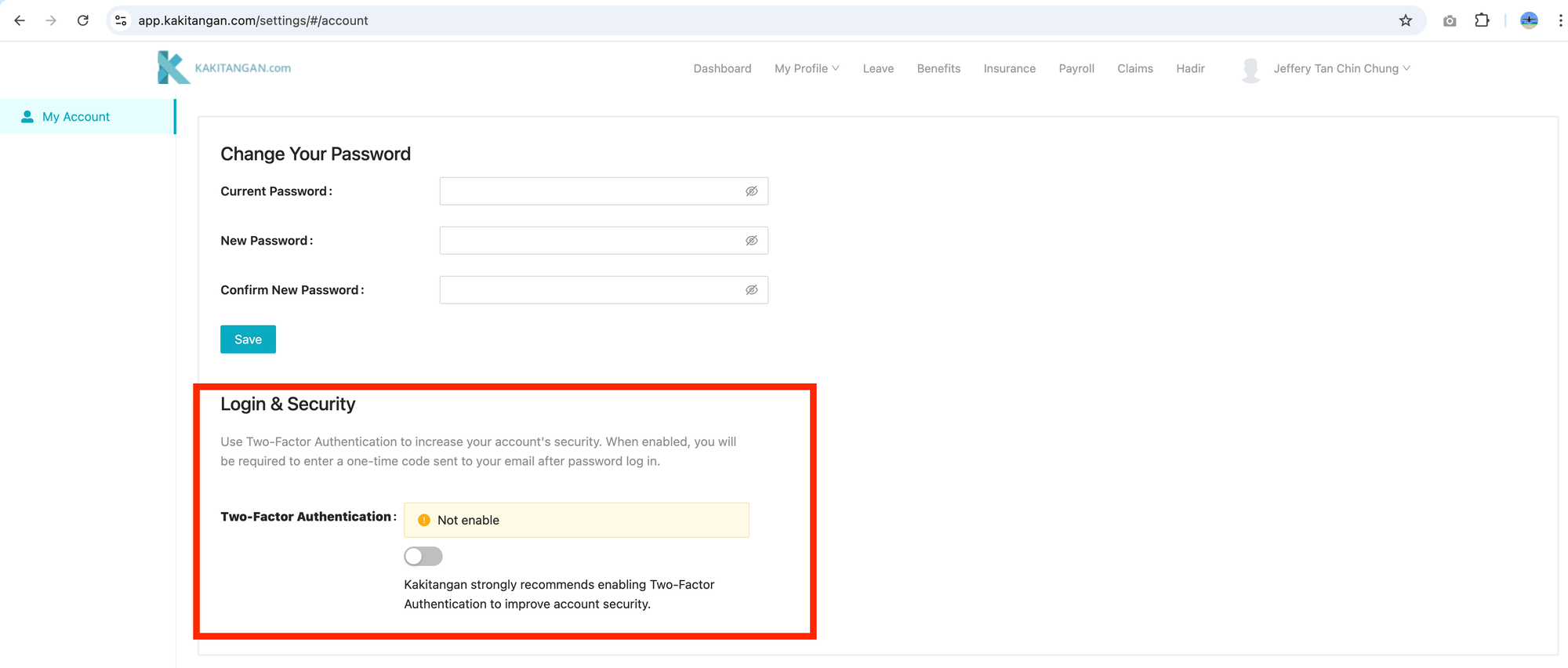Now, Kakitangan.com allows you to enable two-factor authentication for your account. Which means you will need two verification steps before you can access your account. The additional step is an authentication code sent to an email respectively. Once enabled, your account generates a unique authentication code any time there is a sign-in attempt from an unrecognized device. To sign into your account, it will require you to know both the password and have access to the authentication code sent to the email respectively. (Very much similar to the steps of logging into your bank account or approving a fund transfer)