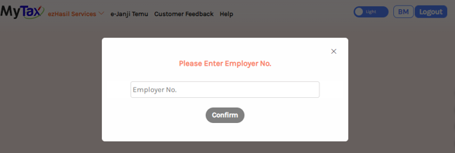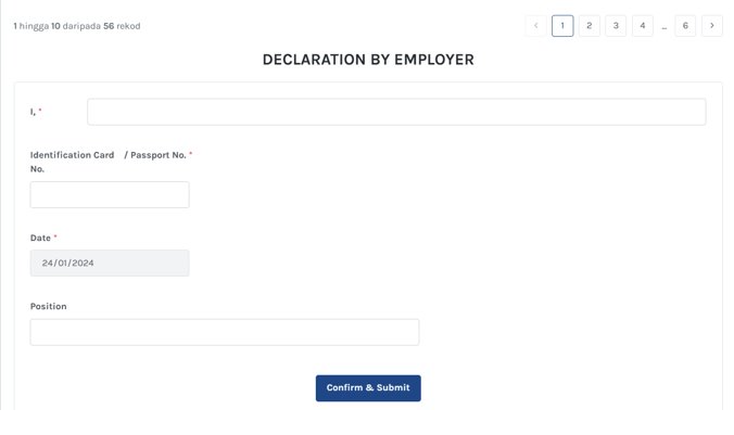 Log masuk menggunakan IC majikan dan masukkan butiran dalam ruangan Employer No.