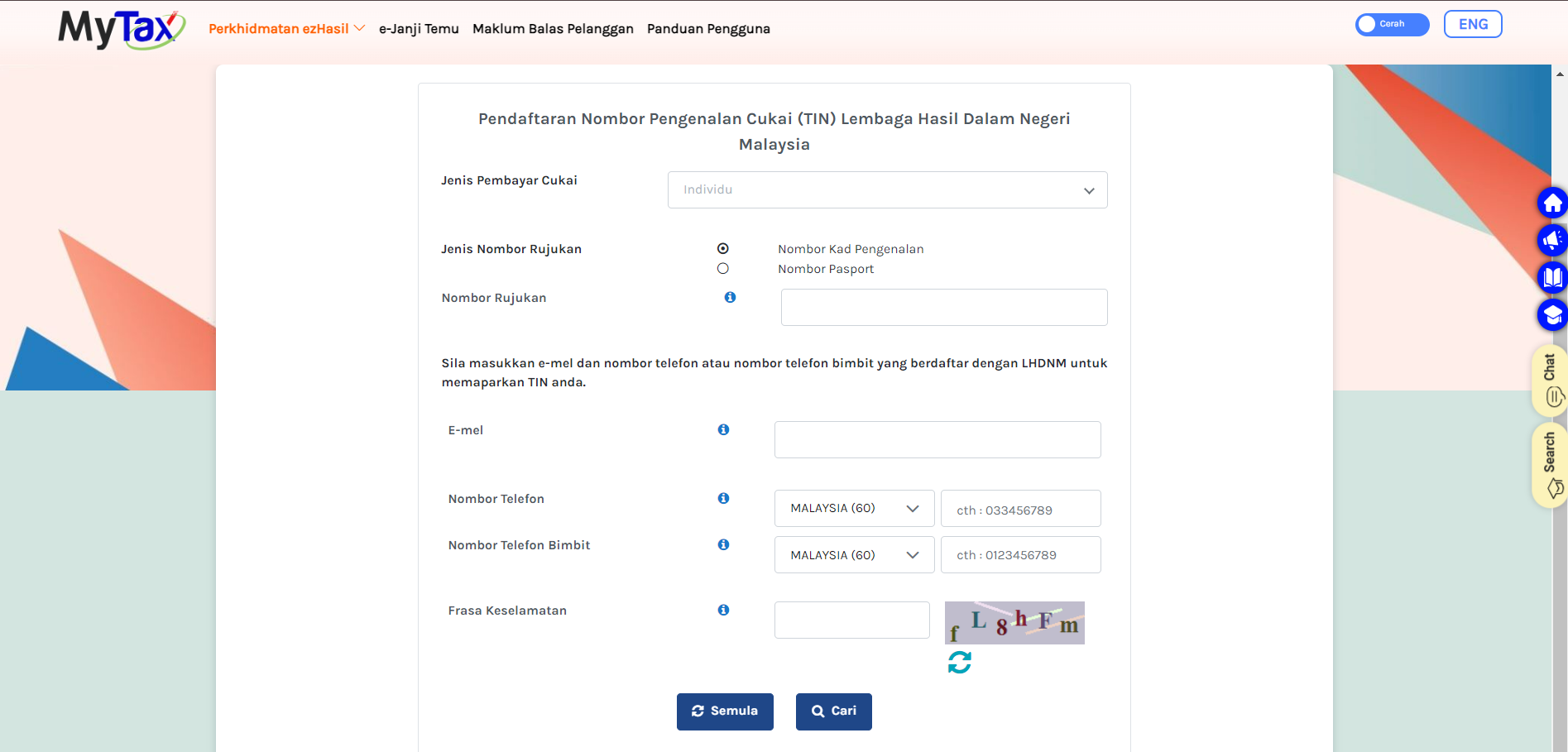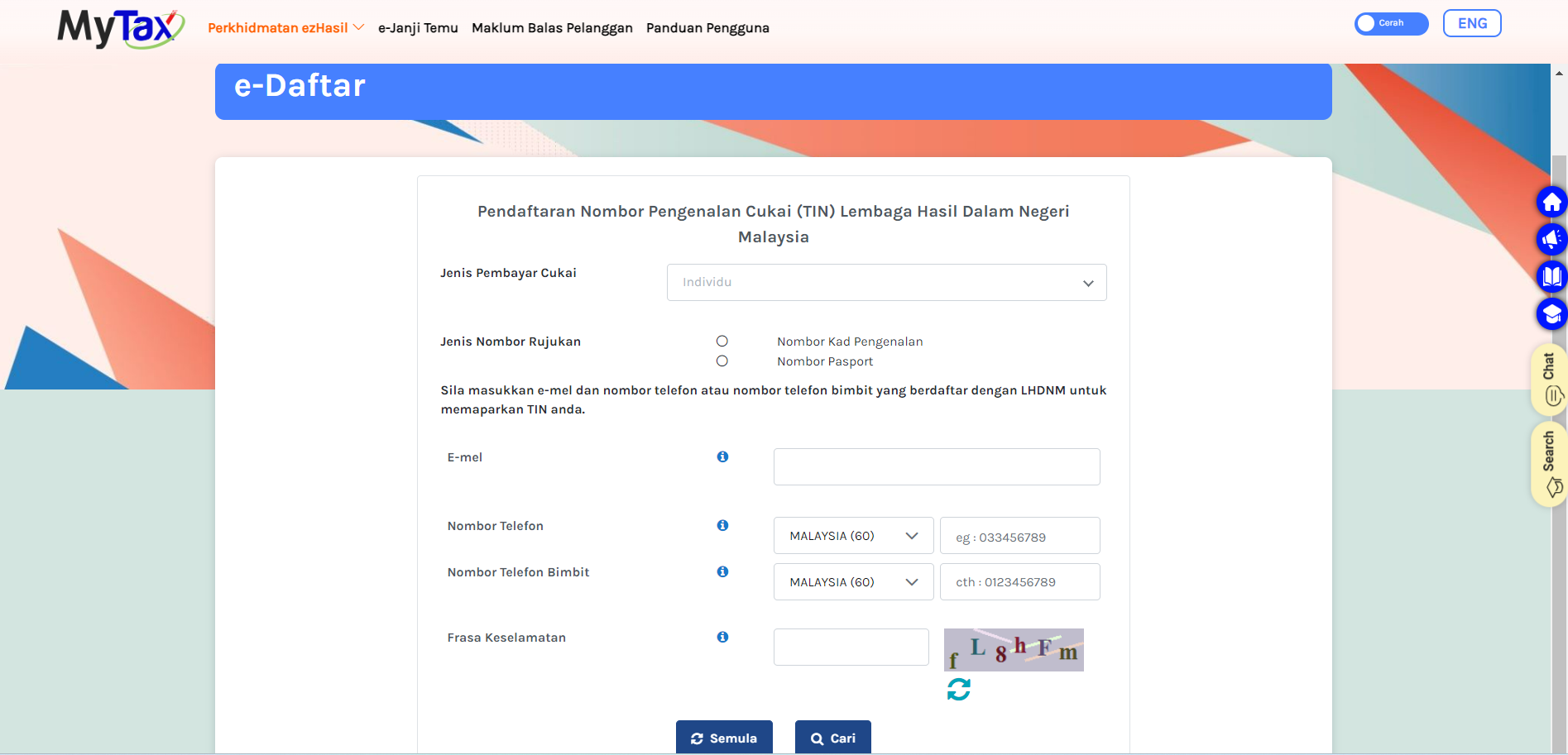 4. Klik pada “Jenis Pembayar Cukai” dan pilih “Individu”