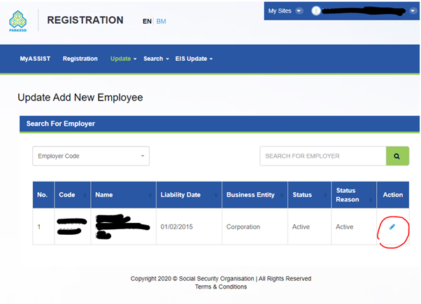 1. Log masuk: https://assist.perkeso.gov.my/employer/login