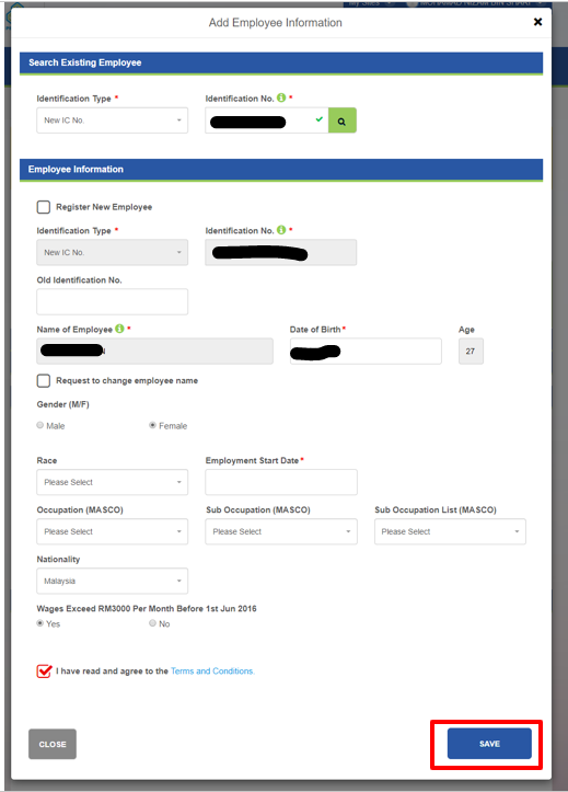 5. Sila isi semua butiran pekerja tersebut dan tekan ‘Simpan’ (Save) setelah selesai