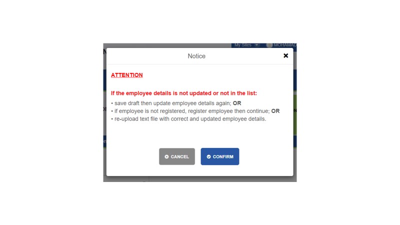 Mesej ini akan keluar, sila abaikan dan tekan pada CONFIRM sekiranya anda telah menyemak semua butiran.