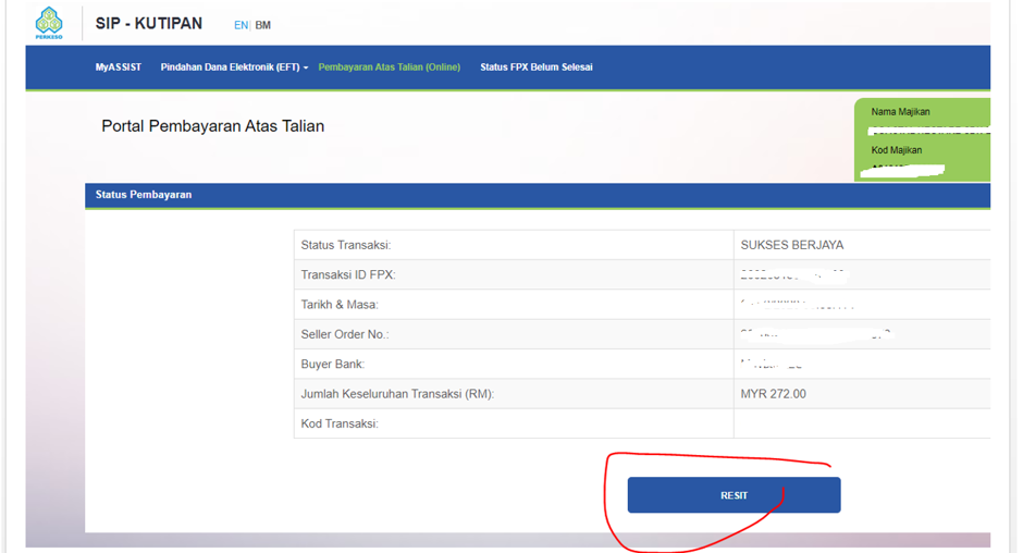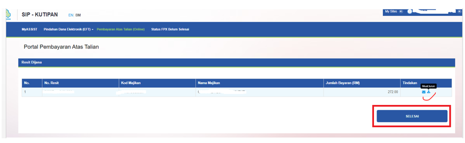 - Setelah pembayaran berjaya, anda boleh memuat turun resit pembayaran bagi tujuan rujukan.