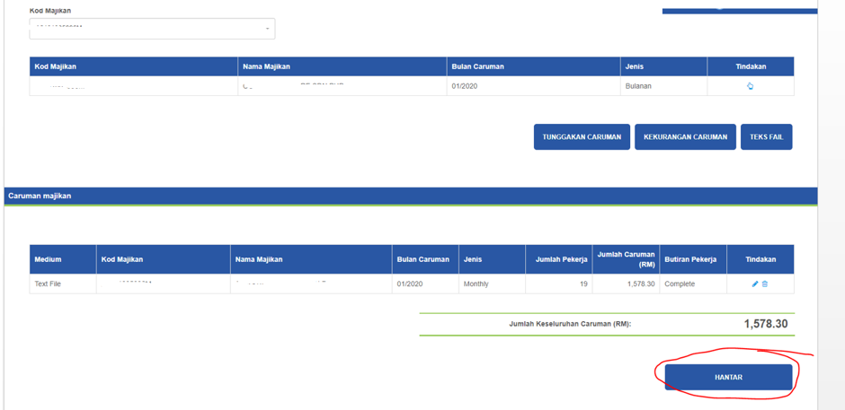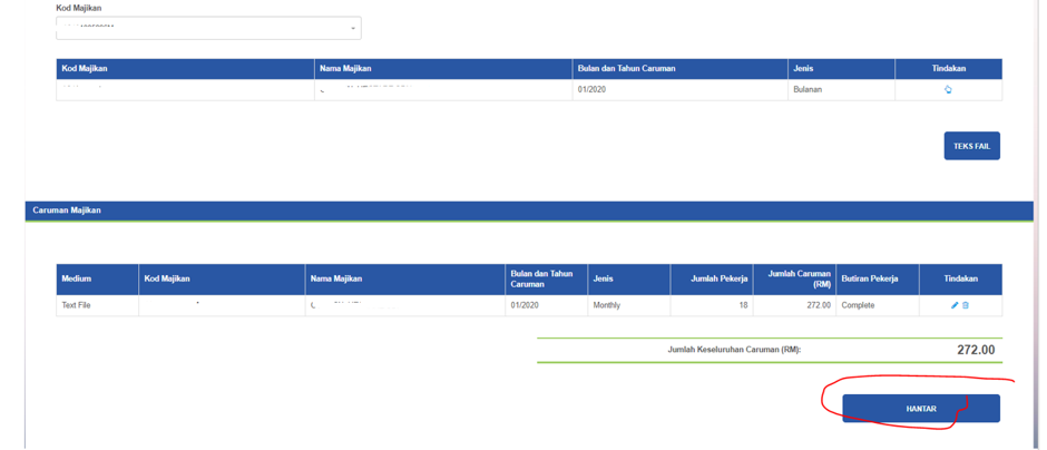 Pastikan Jumlah Caruman betul, kemudian tekan Hantar.