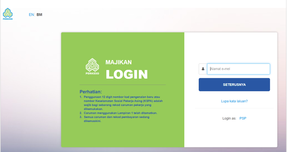 Majikan perlu beralih kepada Portal Assist PERKESO sebelum 31 Disember 2019. Pada majikan yang belum mendaftar untuk Portal Assist PERKESO, sila ikuti langkah-langkah di bawah: