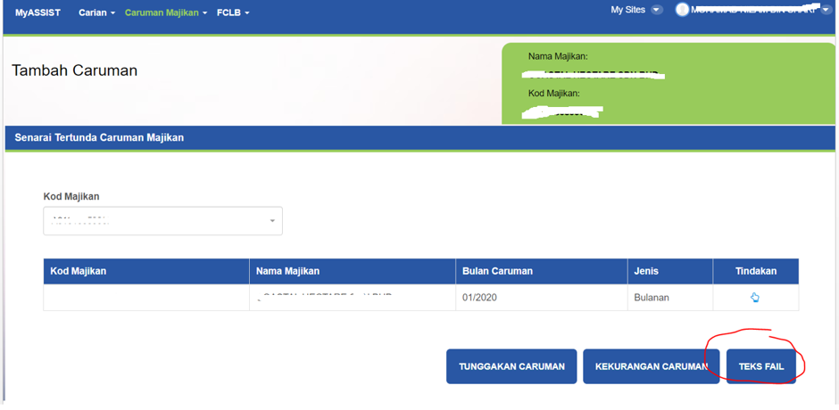 - Pilih teks fail dan muat naik teks fail yang dimuat turun dari Kakitangan.