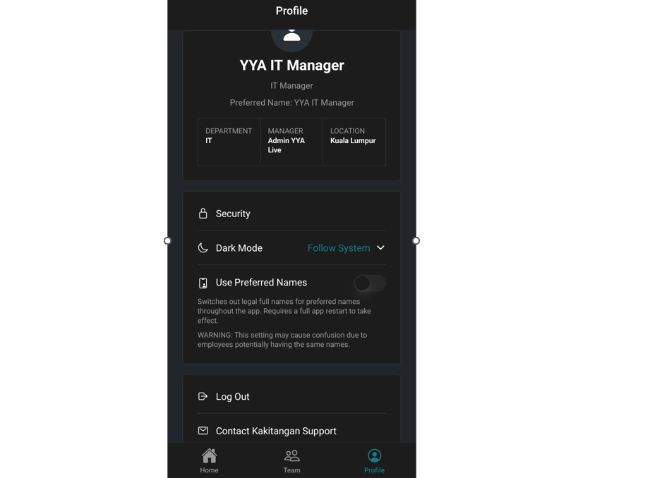 - You can choose to have your preferred name display in the app instead but after enabled, please make sure you kill the app or refresh the app again.