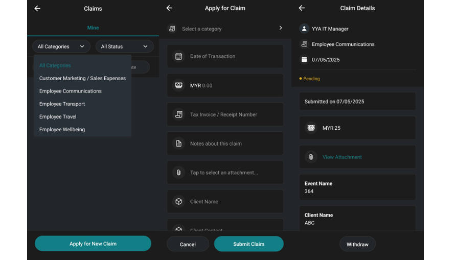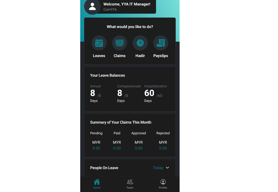 Welcome to the new dashboard look, user interface have been enhanced for better navigation between modules but making sure you get the overview of Leave balance, summary of Claims and People on Leave as well.