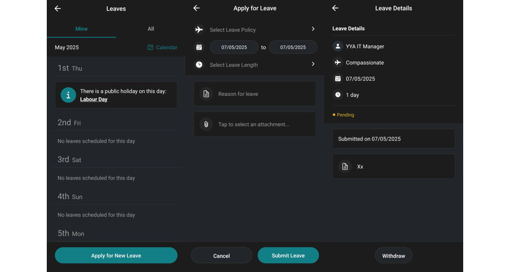 Withdraw - You can view your leave details and withdraw your leave application here.
