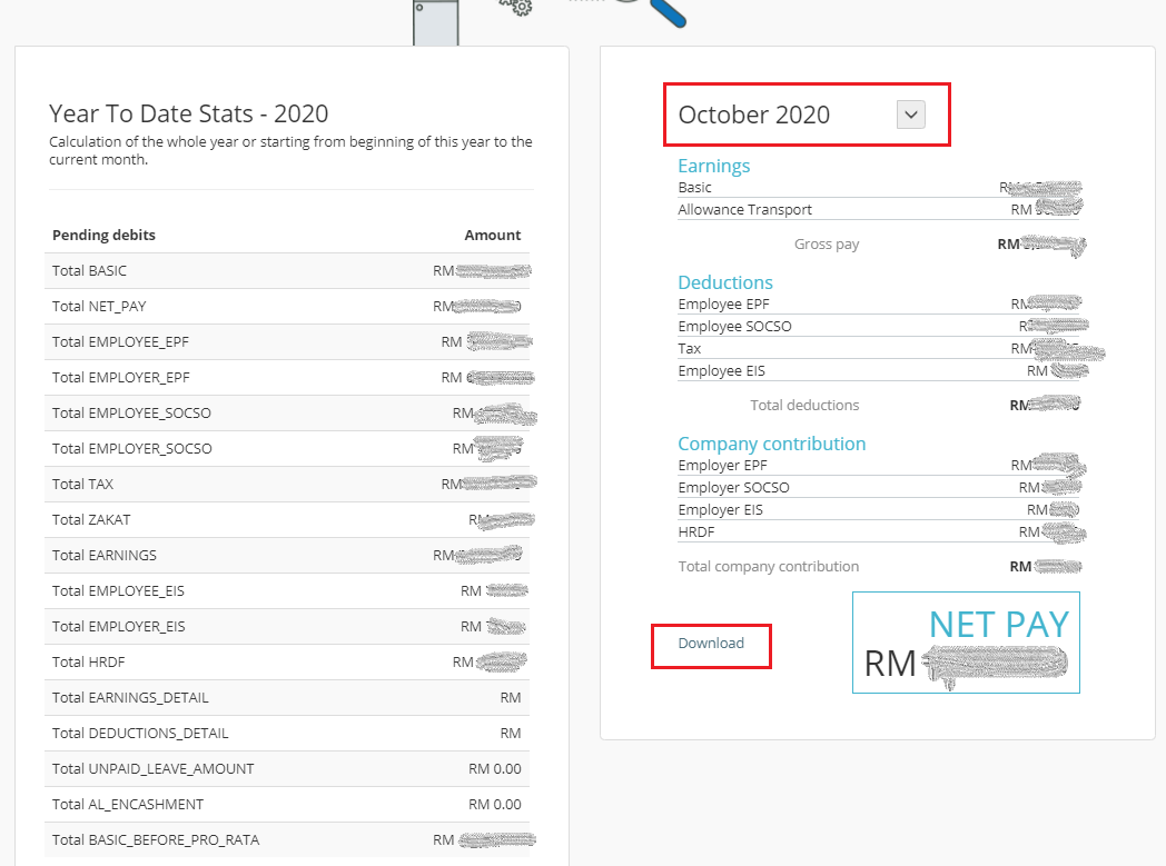 This is what you will see, select which month of the payslip you would like to view and click Download to get a copy of your payslip.