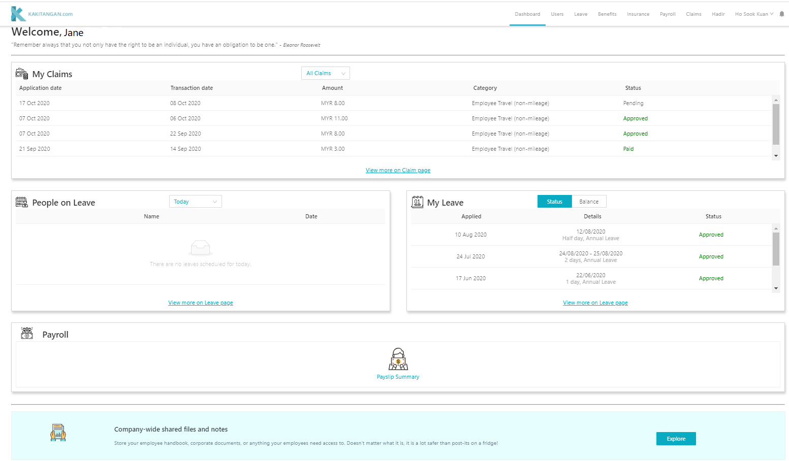 - Summary of my leave and claims? Check out our new dashboard for more!