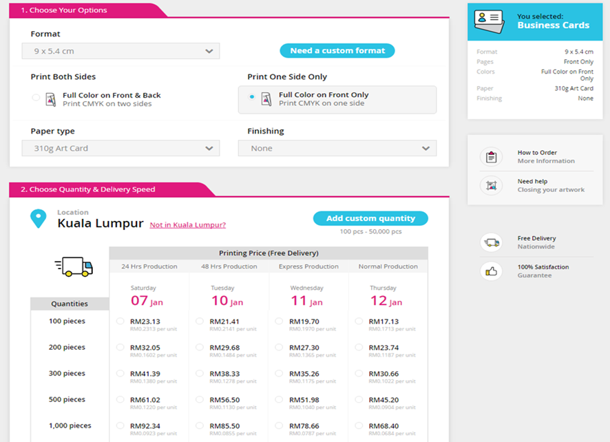 We tried the service, it’s definitely very user-friendly, as well as reliable. Gogoprint allows you to customise and order high-quality business stationery and promotional materials for your business, delivered where you want in Malaysia. For example, you can order business cards or flyers, and choose all the options that you want or need. The ordering process is divided into 4 simple steps, and goes very fast: