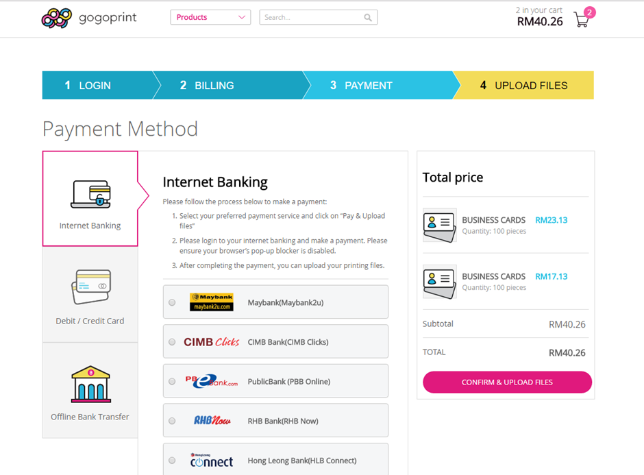 Once you have added all the products that you need to your cart, check-out your order and make payment. There are three different payment methods provided and all of them are secure. You may either settle your payment through online Debit/Credit Card payment, Internet Banking or a traditional Offline Bank Transfer. Please note that Internet Banking and Debit/Credit Card work the fastest and are definitely the most convenient from all perspectives (accounting too!). These payment methods work the best especially for people looking for the highest level of convenience or in a hurry.