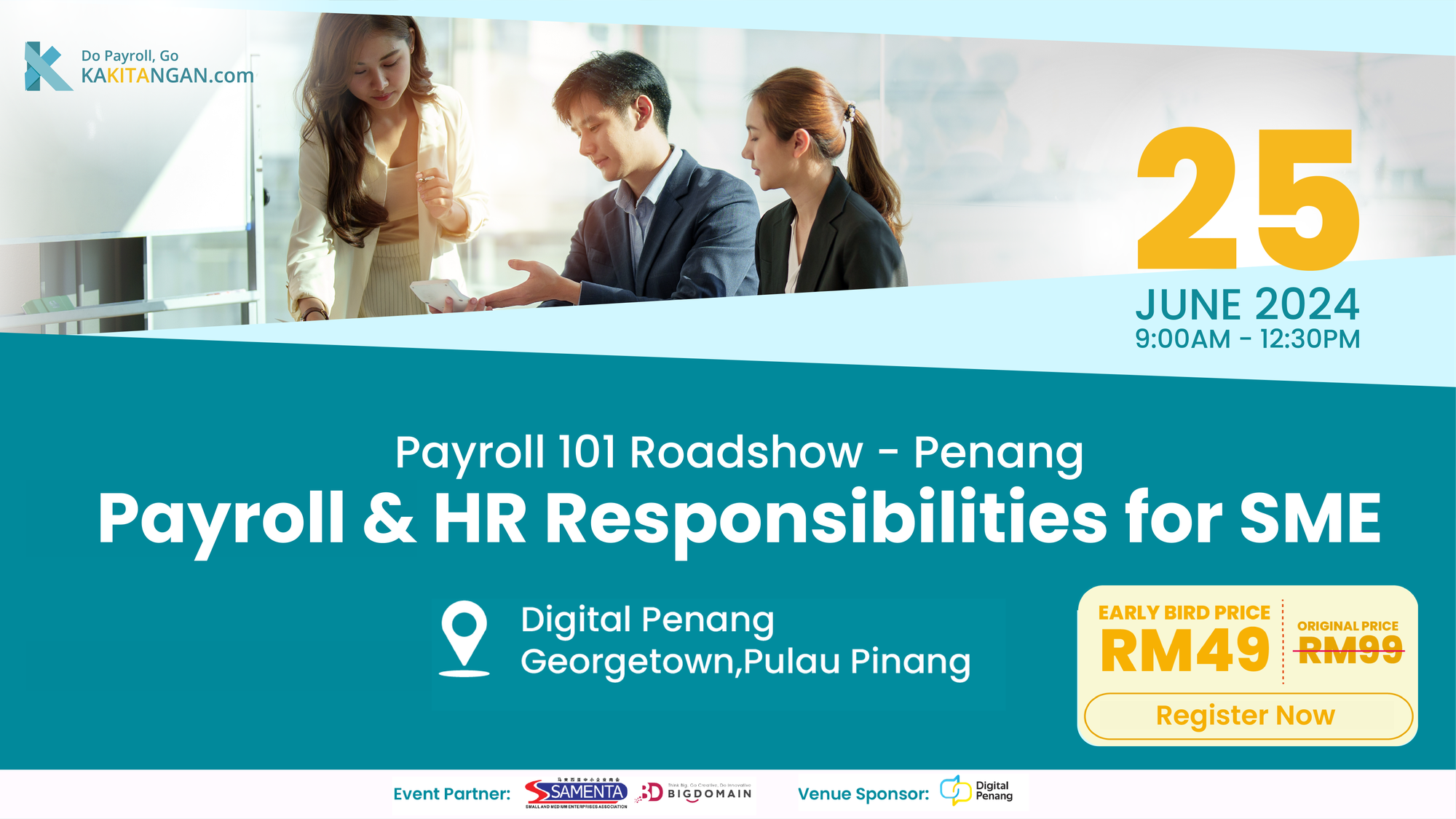 Elevate your business with Payroll 101 - Roadshow Penang. Register now for expert insights, tools, and exclusive offers to streamline your payroll and HR operations. Limited seats available. Don't miss out, register today for early bird pricing!