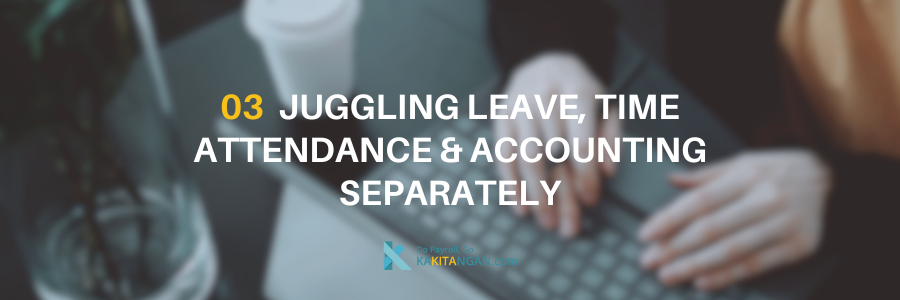 - Juggling multiple tasks. Ever been in a situation where you are juggling leave, time attendance and the accounting system separately for payroll? Are you seriously still okay in managing it separately?
