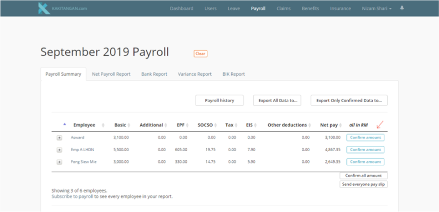 In the payroll summary report click ‘confirm amount’ for all employees once all the details in payroll summary report are correct.