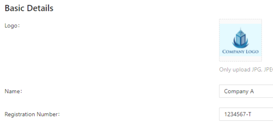 a) In company settings, fill in company name and company registration #