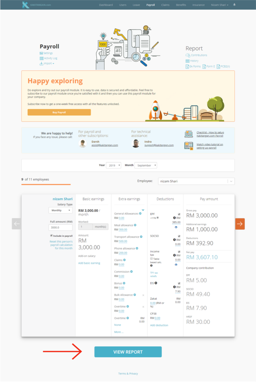 Check the calculation for all employees' payroll to ensure that it is correct. After that, click on view report.
