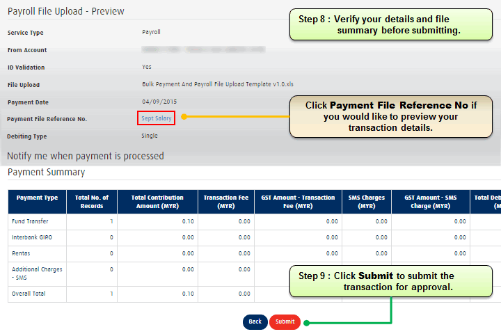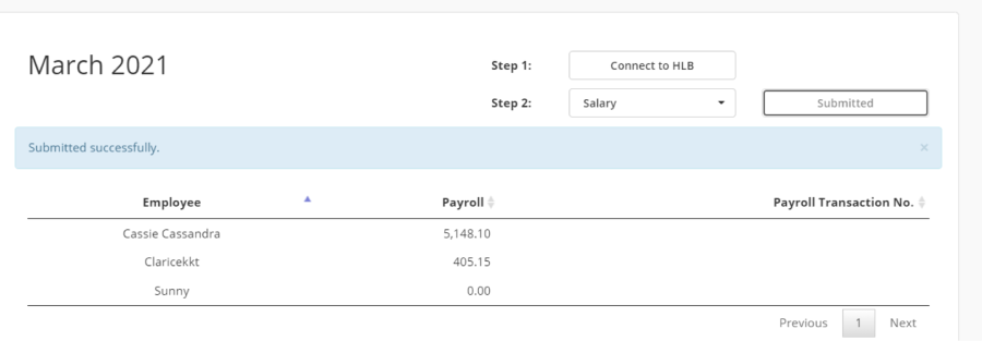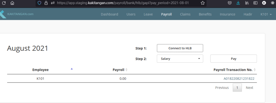 c) Refresh the page and the table will show the available transaction no. Click on the Payroll Transaction No, it will direct to transaction info page.