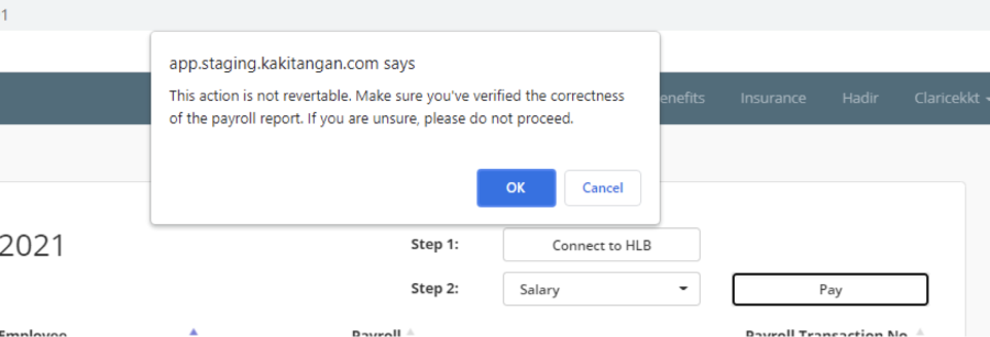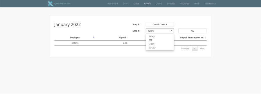 a) After Successfully connect, you may go back to the kakitangan tab and proceed to make payment on Salary/Statutory. Click on the box on step 2, and it will have a dropdown to select "Salary” or Other “Statutory” to pay