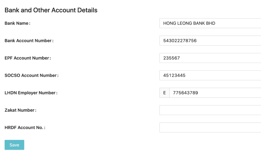 b) In Company Settings, go to Bank and Other Account Details.