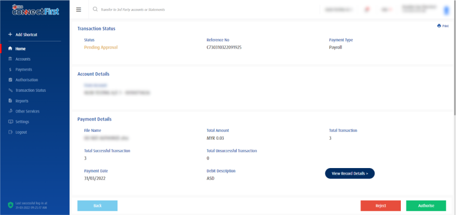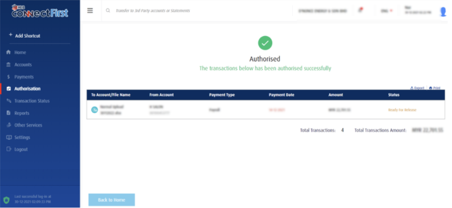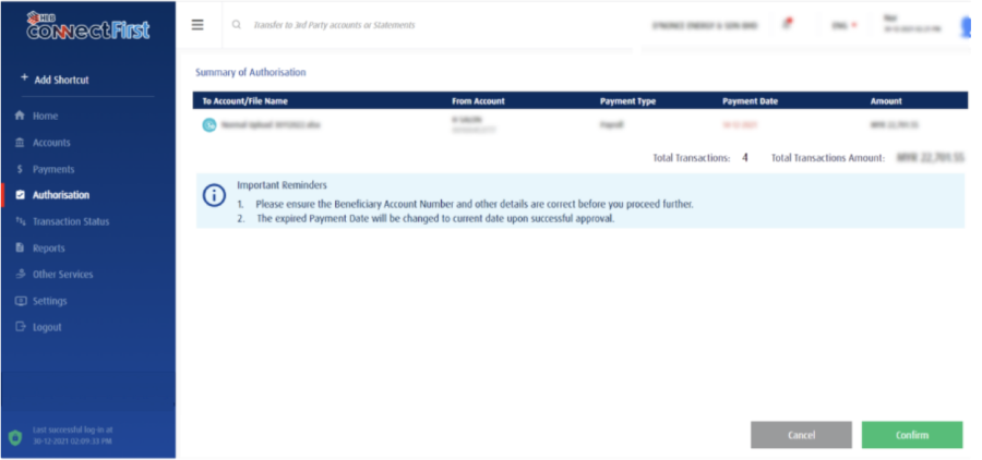 For further details in "Authorization", feel free to check https://www.hlb.com.my/HLBCF_userguide from page 27 onwards