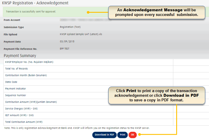 Once confirm it will direct you to this screen where inform you that you have successfully authorize the payment – those company