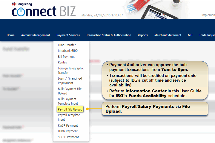 Log into Connect Biz in Hong Leong Bank and follow all the steps below: