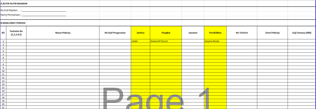 (Note: We realized the Perkeso website is stating RM4000 and below but the form of Lampiran Senarai Pekerja (see II below) is showing us RM5000 and below, we decided to just fill up employees with RM5000 and below and let Perkeso to inform us the status later on. If you need further verification, we suggest you to contact Perkeso.) -