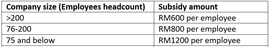 Subsidy amount is differed by company size, please see below summary chart.