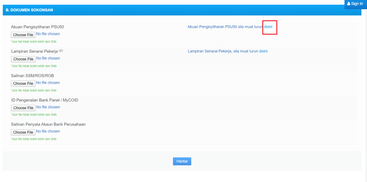 I. Akuan Pengisyitharan PSU50