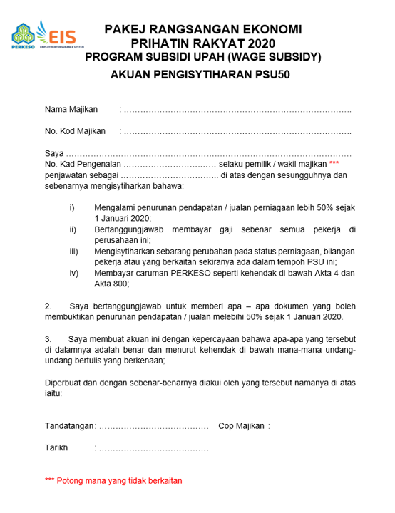 - Visit https://www.perkeso.gov.my/index.php/en/kenyataan-media or https://www.perkeso.gov.my/index.php/en/wage-subsidy-programme
