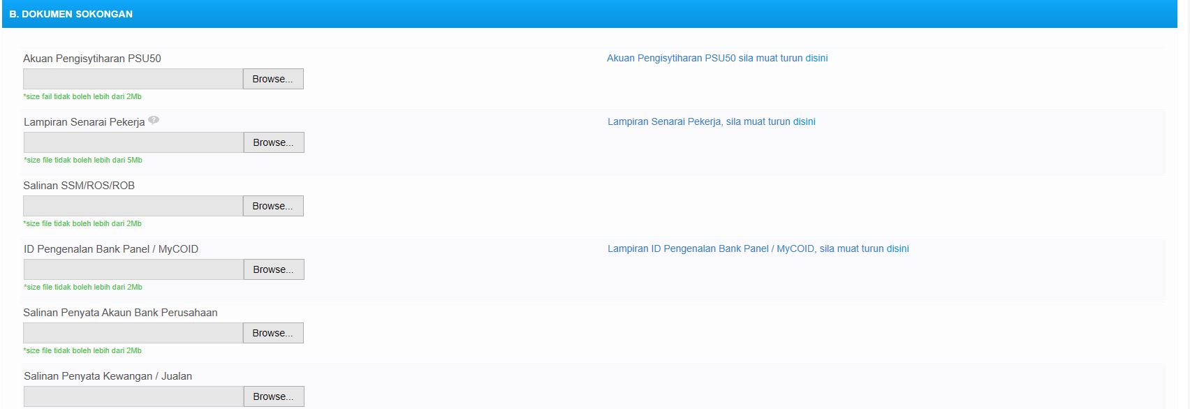 Screen below is Part B, consists of 5 documents to fill up and upload. Don’t panic, here we will guide you one by one.