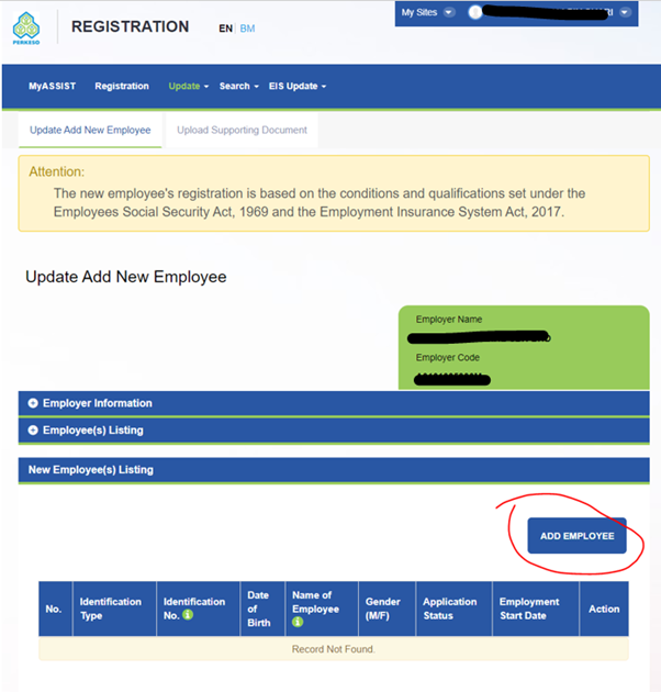 How to add a new employee in Assist Perkeso Portal?