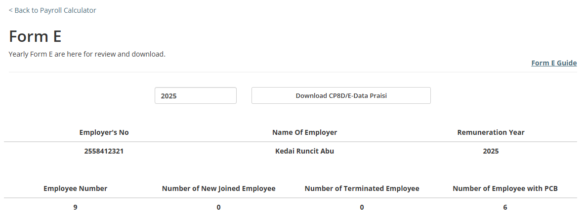 - Firstly, you need to get everyone’s aggregated 2025 payroll data correct. In Kakitangan.com, the system captures the data for form E/EA via 2 places: firstly, the payroll summary you “confirm” every month; and secondly, the payroll->import page that you put in aggregated numbers for your employee PRIOR TO using Kakitangan.com.