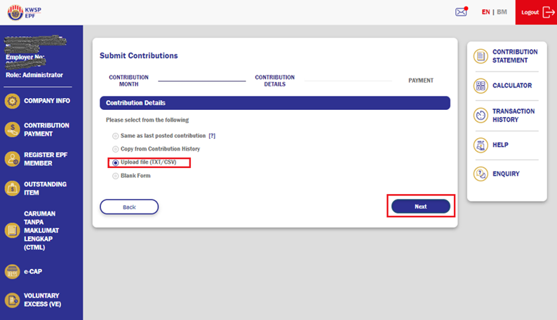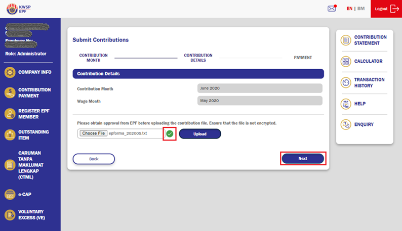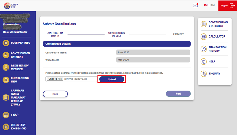 Choose the file you just downloaded from payroll kakaitangan and click "Upload" .