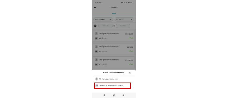 How to Submit a Claim Using OCR in the Kakitangan.com Mobile App
