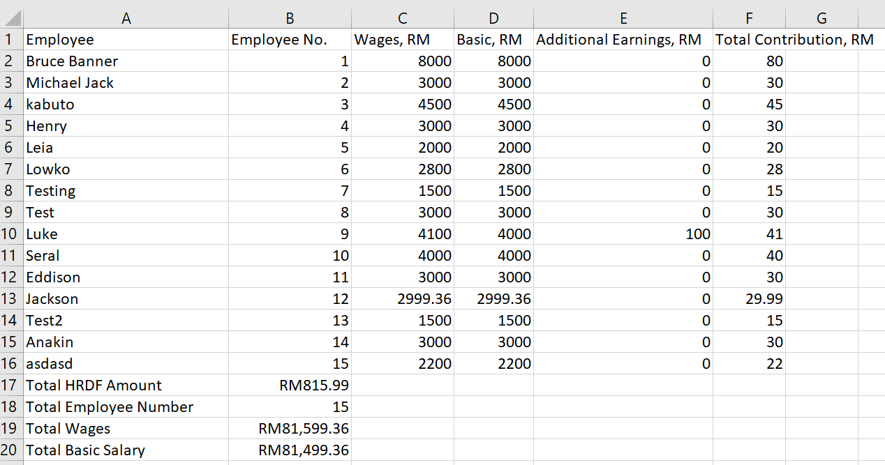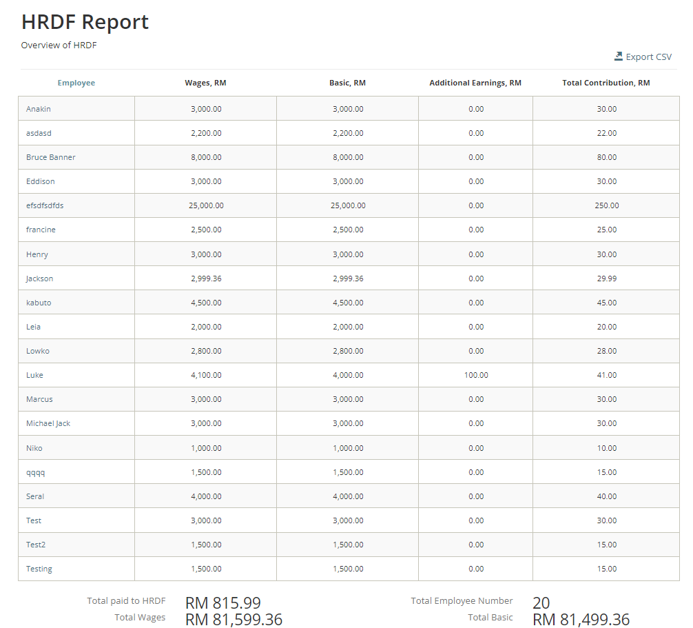 Once it is filled up with data, you can view all the employees that are contributing to HRDF