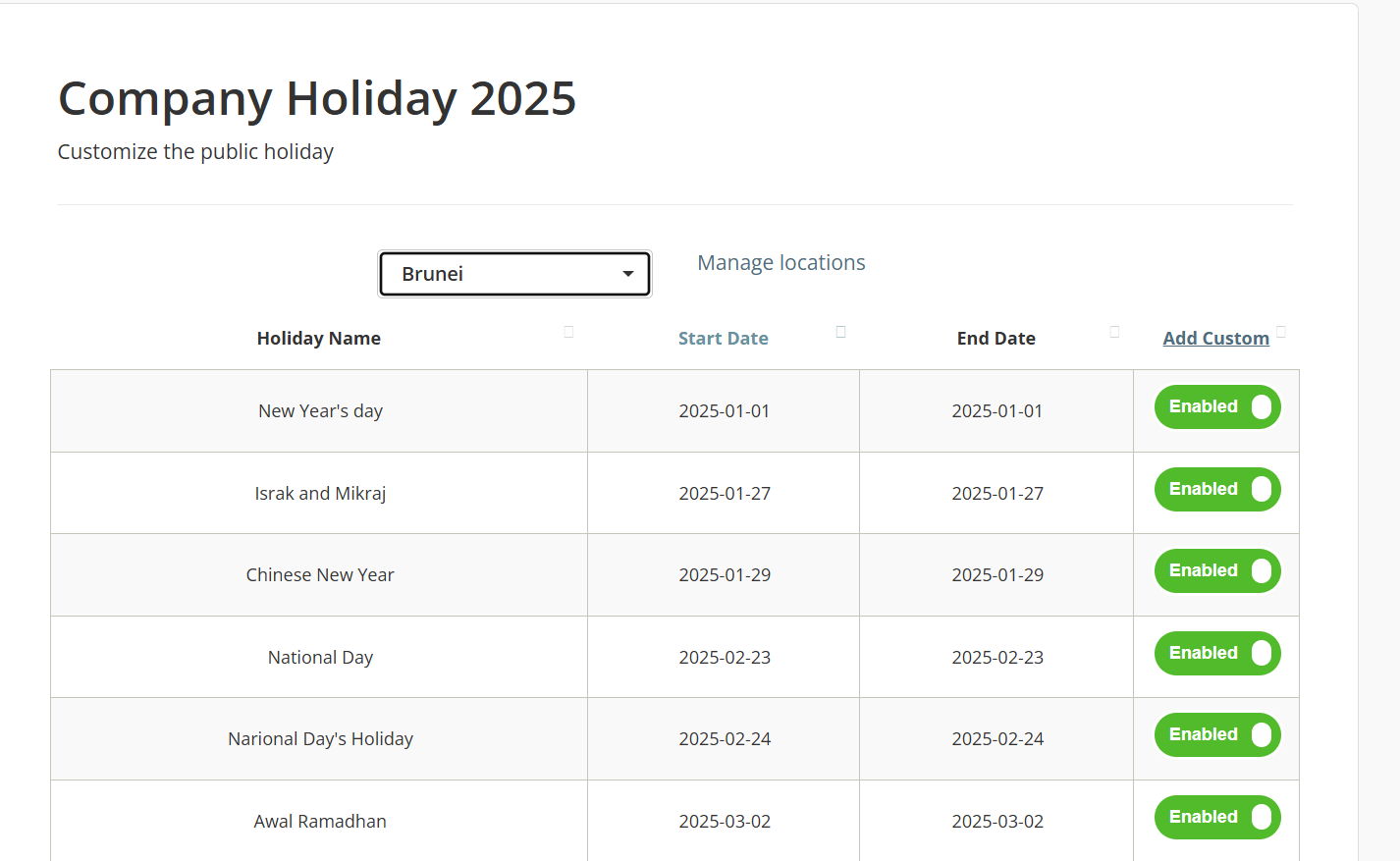For our Bruneian users, we have added Brunei’s public holidays to the Leave Calendar to make leave planning more convenient and accurate.