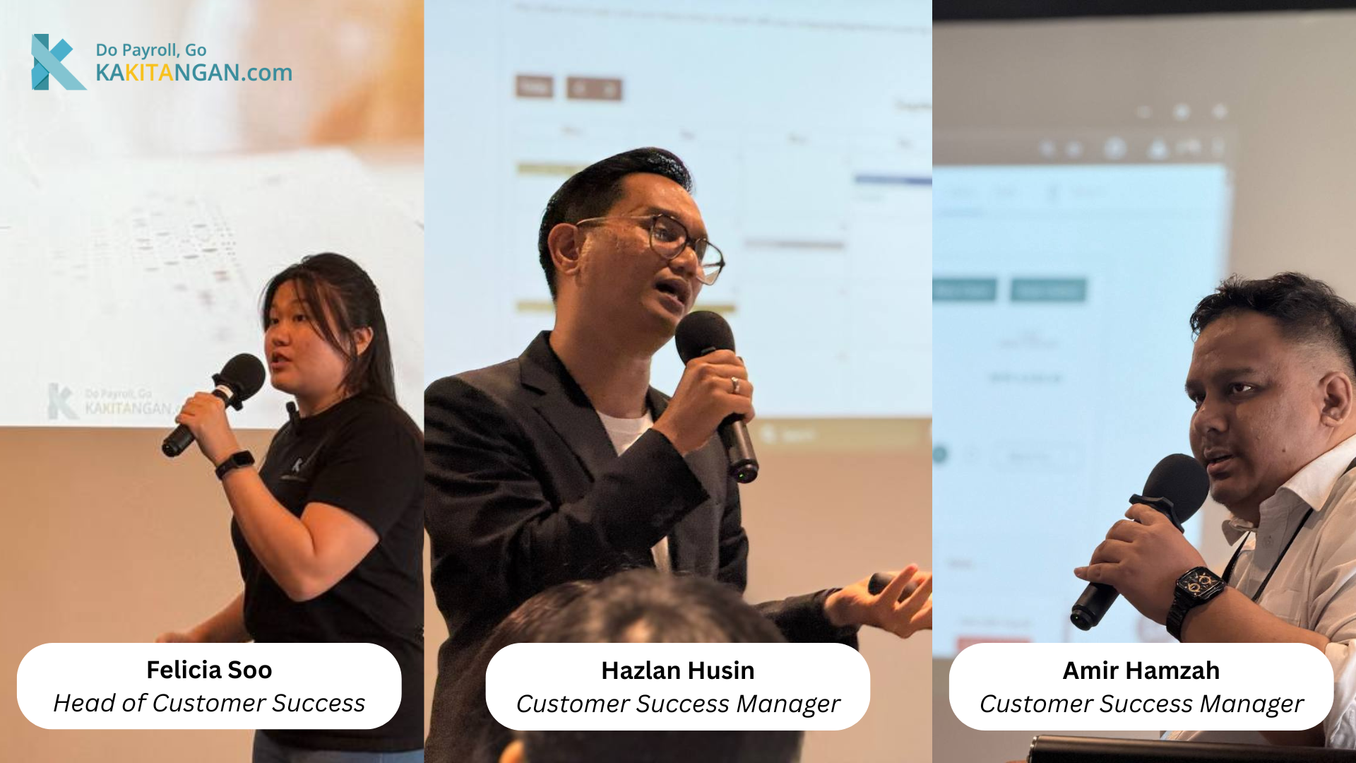 Kakitangan.com’s own Customer Success team, represented by Felicia Soo, Hazlan, and Amir, delivered highly engaging sessions on Common Payroll Challenges and a Live System Demo, showing how digital integration streamlines payroll, leave, claims, and attendance management while ensuring statutory compliance.