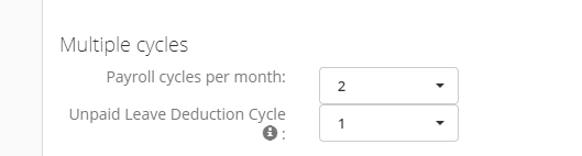 If your company practices two cycles payroll, please make sure you have switch on this under Payroll setting -> Multiple cycles -> Select "2" cycles per month. Note: You may disregard the unpaid leave deduction cycle if you do not subscribe our Leave module.