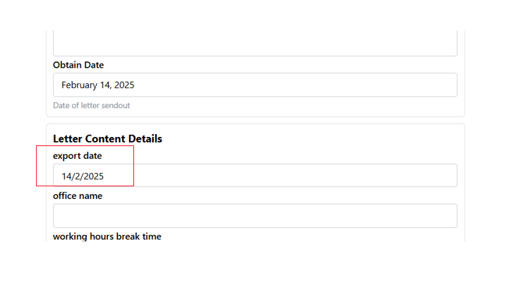 II. Some data are reserved fields for you to fill up the value before sending to the recipient, for instance, {{export_date}}, you fill this up when you are sending the letter.