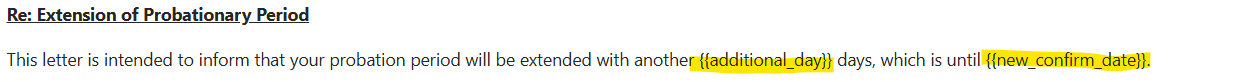 Some fields require you to fill up the expected value, for example, additional day for extension of probationary period.