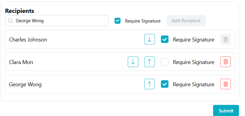 You may select any required recipients as you needed with the choice of setting the requirement of a signature. Please be mindful on the sequence of the list of recipients, it is in order and will be shown in the letter, the first recipients will be the first to receive and sign before the next and vice versa.