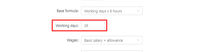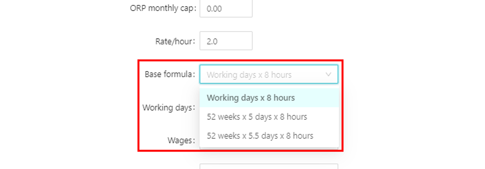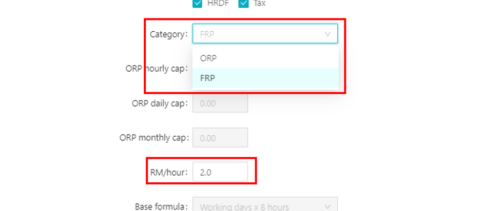 4. If your company has different ways to calculate OT, you can customize it at Category, Base formula, and Working days: