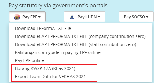 You may find Borang KWSP 17A (KHAS2021) at Payroll summary page – under Pay EPF.