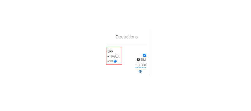 Step 1: Under Kakitangan.com payroll page – Deductions column will show the selection of EPF of 9% and 11%. Make your selection accordingly,