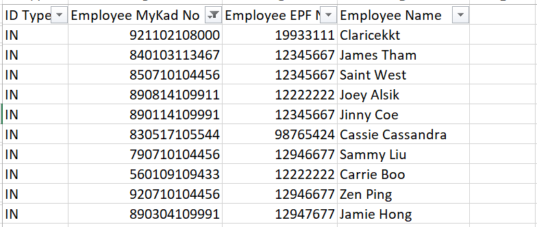 - Employee MyKad No : 12 digits ONLY (exclude dashes)
