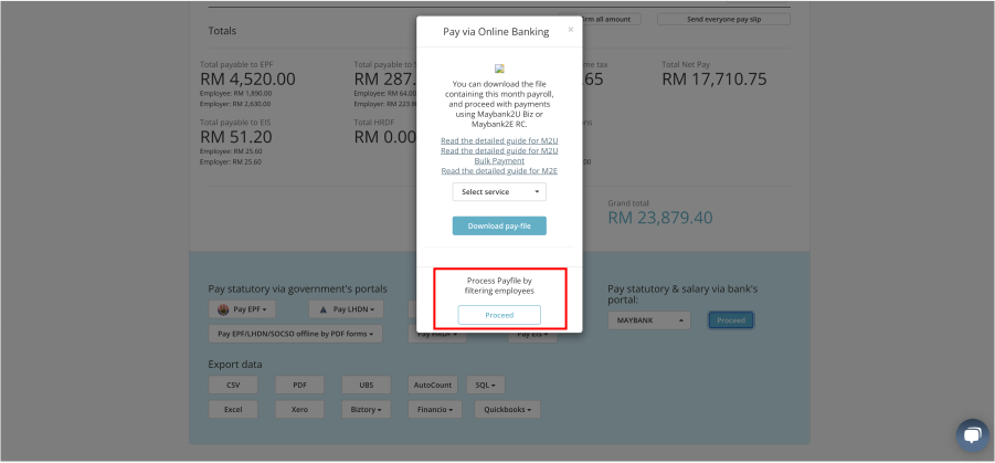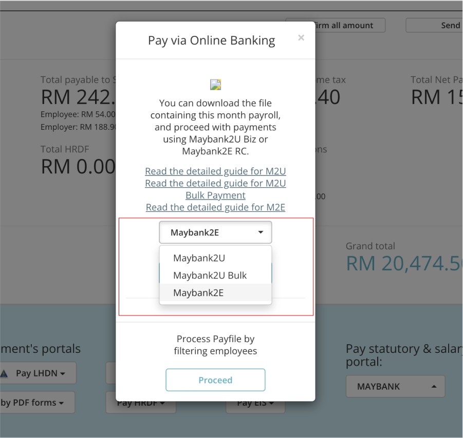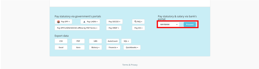 a) At the bottom of the page, at Pay statutory & salary via bank's portal, select your preferred Bank and click proceed.
