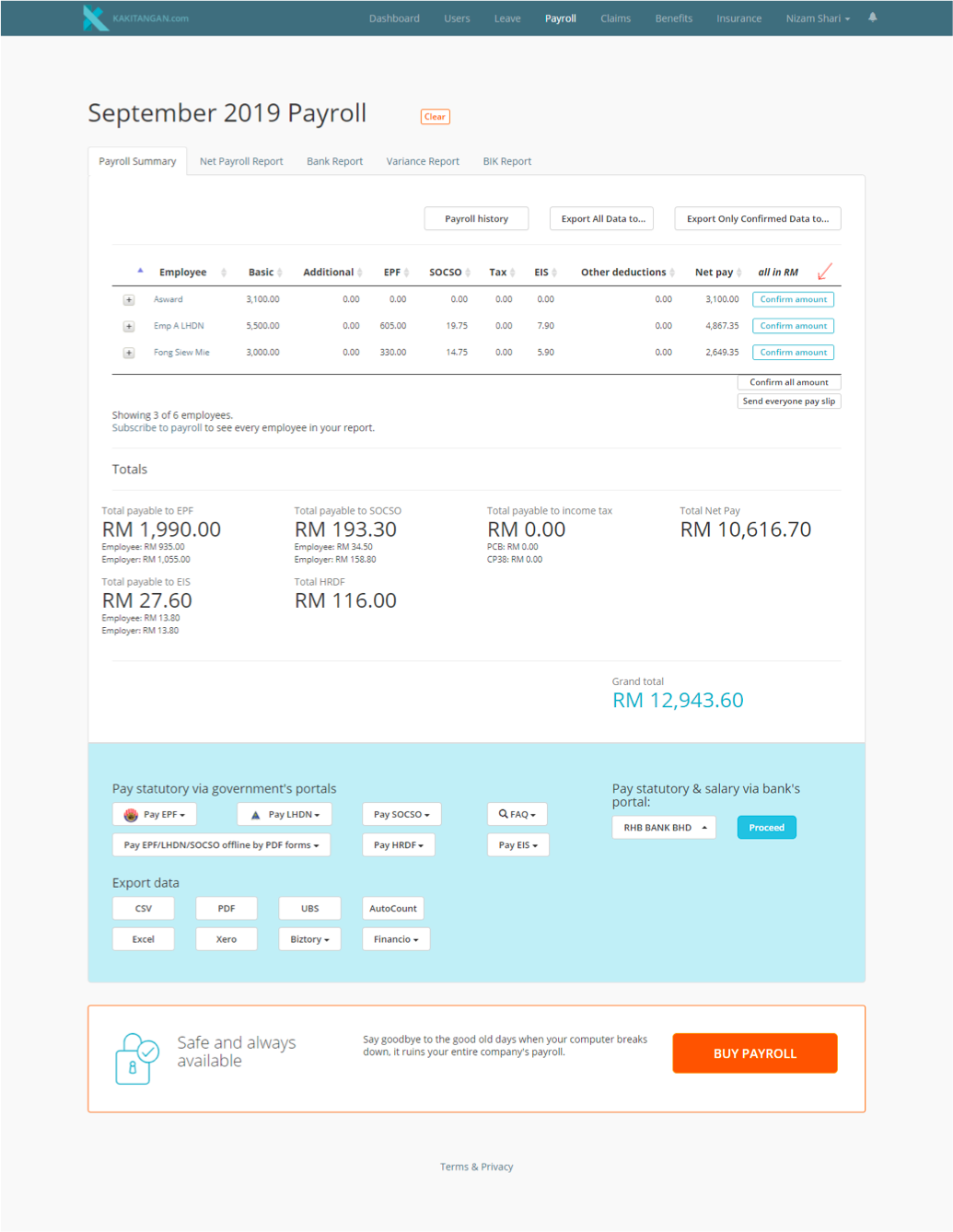 Step 2: In the payroll summary report, click confirm amount for all employees once all the details in payroll summary report are correct.